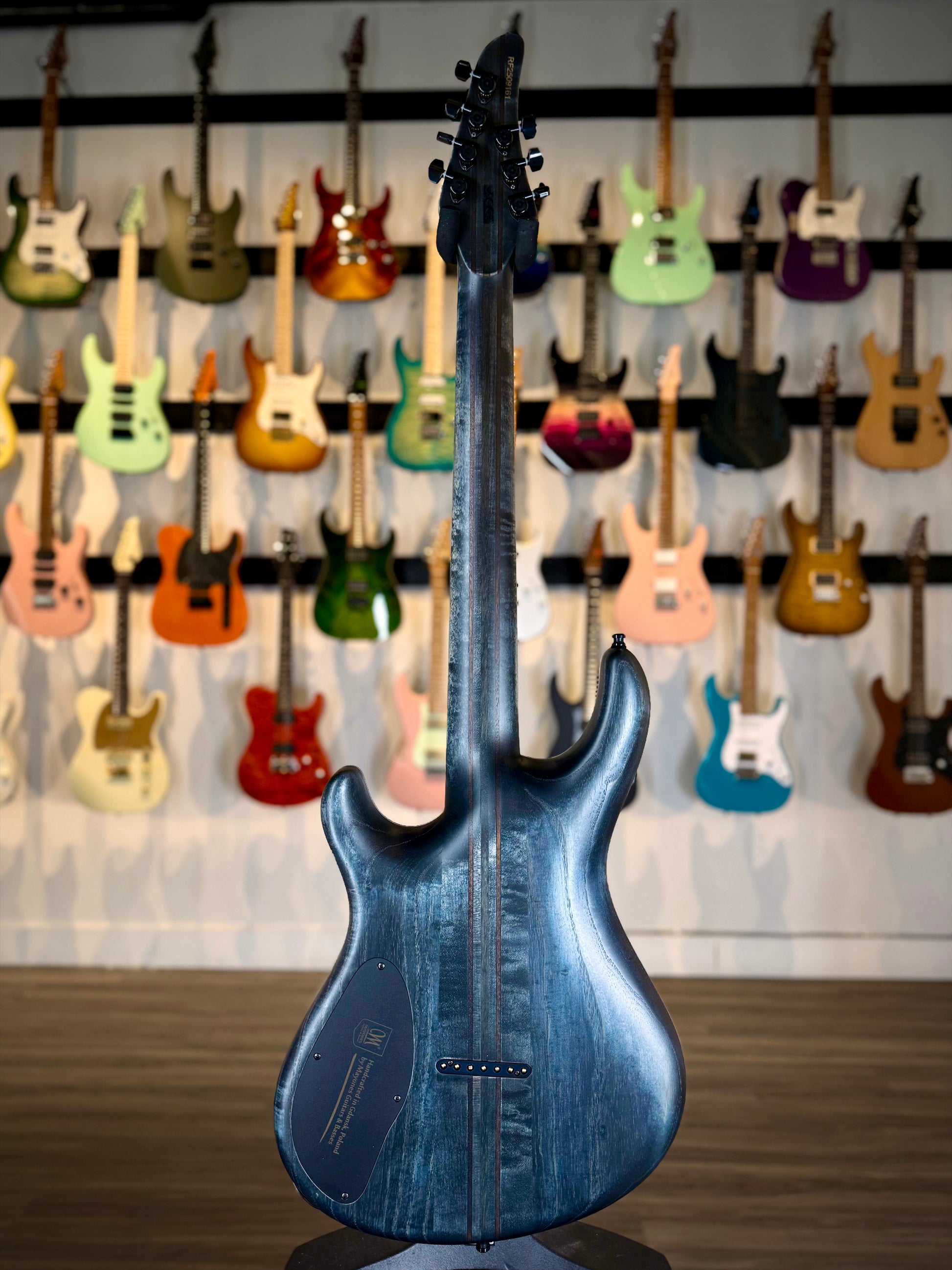 The Mayones Regius 7 in Blue Spirit Gloss is a statement piece for players who demand the very best in tone, feel, and craftsmanship. Hand-built in Poland, this Regius features a breathtaking 4A curly poplar top finished in Mayones’ custom Blue Spirit Gloss, revealing vivid, three-dimensional figuring that shifts beautifully under lights.