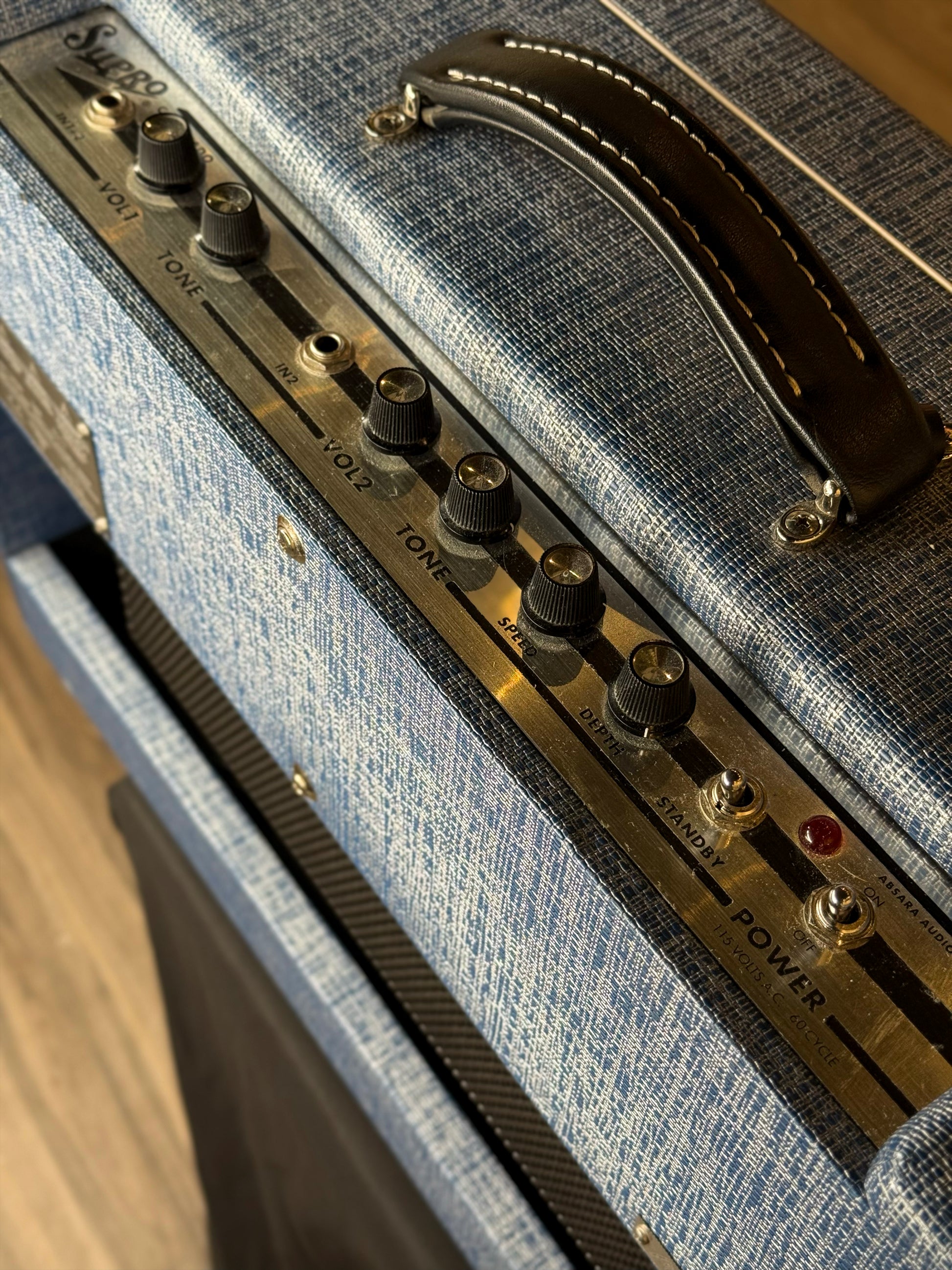 Its two-channel preamp (with both channels linkable via the 1+2 input) gives you everything from open, vintage cleans to thicker, gain-stacked drive. The shared tube tremolo adds classic movement and depth, while the pair of custom 10" Supro speakers provides punch, articulation, and projection that holds together on large stages.